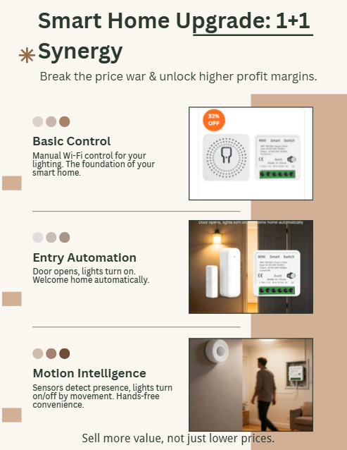 We are introducing the Smart Home Upgrade: 1+1 Synergy strategy. By pairing our high-performance Mini Smart Switches with intuitive smart sensors, you can stop "selling parts" and start "selling automated solutions."